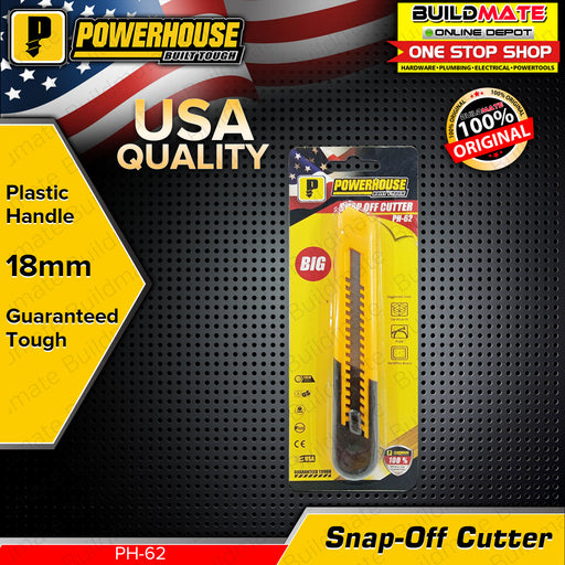 Buildmate Online DepotPOWERHOUSE Snap Off Cutter BIG 18mm PH-62 •BUILDMATE• PHHTSPECIFICATIONS:►18mm►Plastic Handle