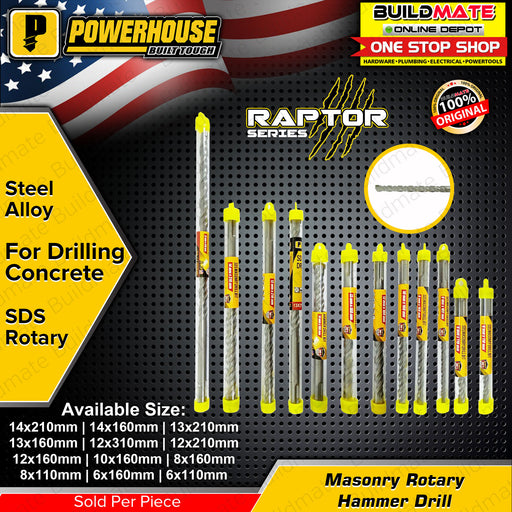 Buildmate Online DepotPOWERHOUSE Masonry SDS Rotary Hammer Drill Bit SOLD PER PIECE •BUILDMATE• PTAA AVAILABLE IN: ►10.0mm x160mm ►12.0mm x160mm ►12.0mm x210mm ►12.0mm...