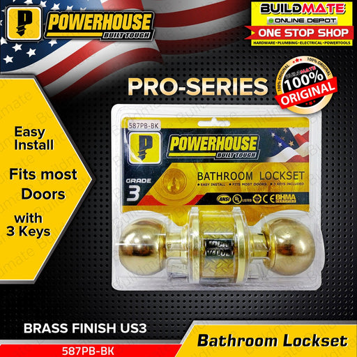 POWERHOUSE PRO SERIES Cylindrical Bathroom Lockset Brass Finish US3 PH587PBBK •BUILDMATE• PHDH