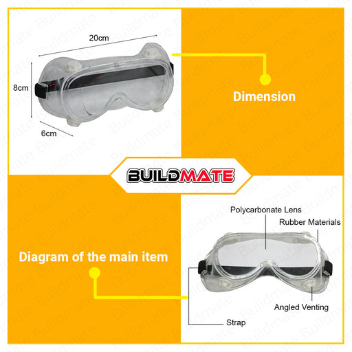 POWERHOUSE Safety Goggles Elastic Headband Lightweight Eye Protection Googles •BUILDMATE• PHHT