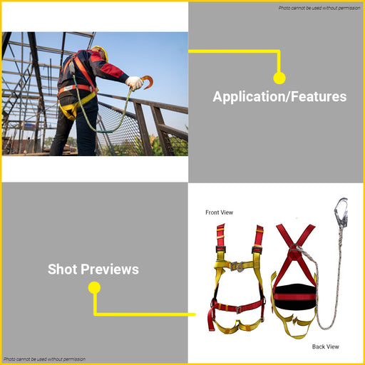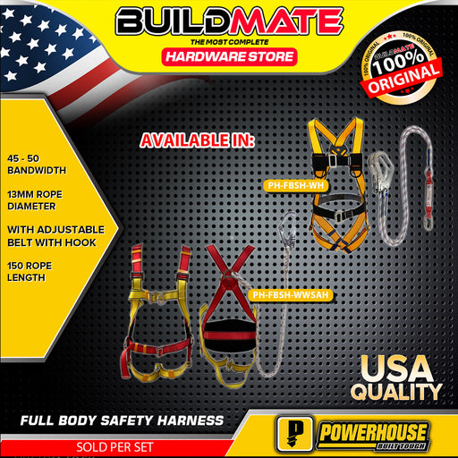 BUILDMATE Powerhouse Full Body Safety Harness with Adjustable Belt and Hook Ø13mm x 150cm Fall Arrest Protection Personal Safety Harness Belt - PHHT