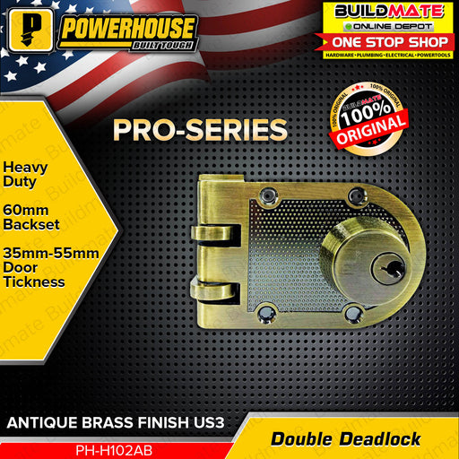Buildmate Online DepotPOWERHOUSE PRO SERIES Double Deadlock Antique Brass Finish PH-H102AB US3 •BUILDMATE• SPECIFICATIONS:►Material: Satin FinishFEATURES►Easy Installati...