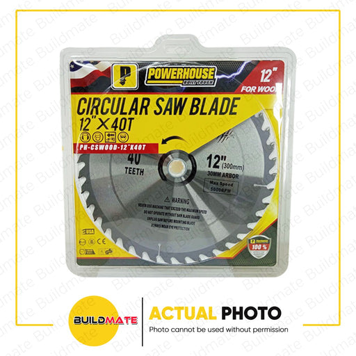 Buildmate Online DepotPOWERHOUSE Circular Saw Blade Carbide Tip for Wood 14"X40T •BUILDMATE• PHPTA SPECIFICATIONS: ►14"X40T ►Material: Carbide ►For Wood FEATURES: ►Combi...