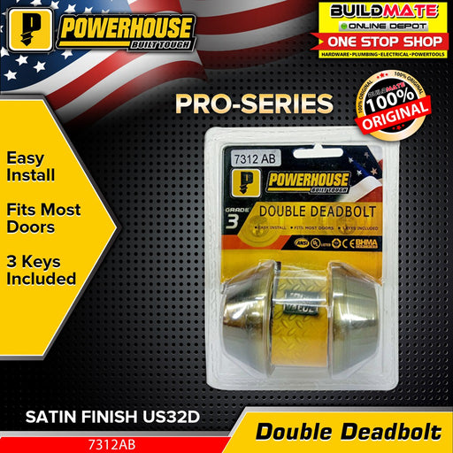 POWERHOUSE PRO SERIES Double Deadbolt PH7312SSDD Satin Finish US32D •BUILDMATE• PHDH