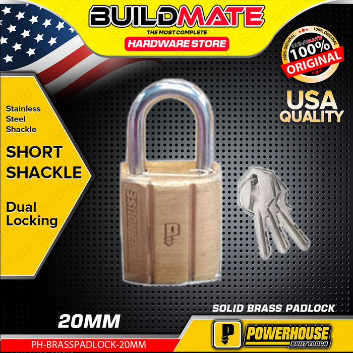 BUILDMATE Powerhouse Solid Brass Padlock Short Shackle 20mm with 3pcs Keys Anti-rust Security Padlock - PHDH