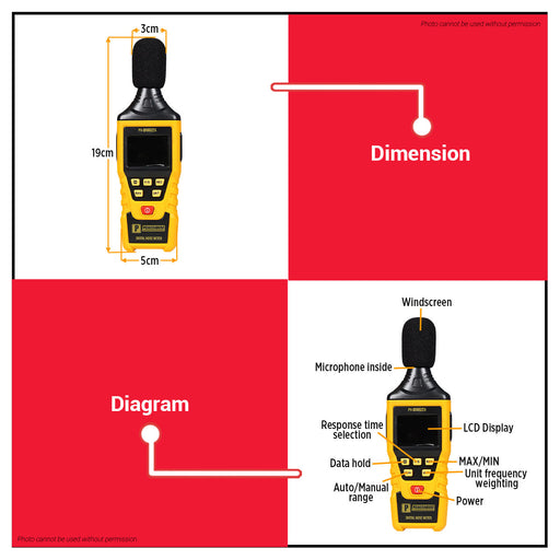 PowerHouse Digital Noise Meter w/ Polarized Capacitance Microphone 30-130DBA PH-DNM622A PHHT