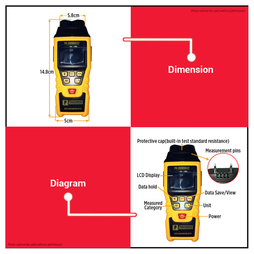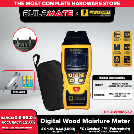 Buildmate Online DepotNo reviewsPowerhouse 0-58% Digital Wood Moisture Meter Pin- Type Measuring Tool Timber Damp Tester For Wood Drywall & Concrete PH-DWMM632 - PHHT SPECIFIC...