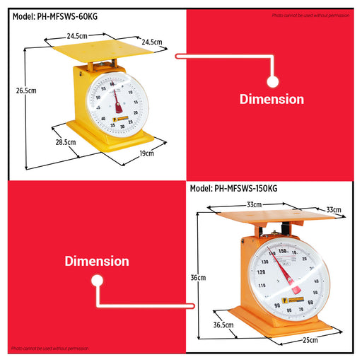PowerHouse 60kgs | 150kgs Mechanical Flat Tray Spring Weighing Scale PH-MFSWS-60KG | PH-MFSWS-150KG PHHT