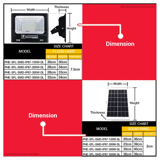PowerHouse 200W | 300W | 500W Electric Solar Flood Light DAYLIGHT Outdoor Weatherproof Solar-powered Security Light IP67(SMD) 6500K PHE-SFL-SMD-IP67 PHE