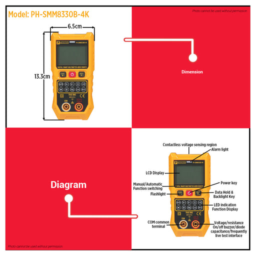 PowerHouse Digital Multimeter 6,000 Counts CAT III 1000V/CAT IV 400V AC/DC Voltage Ac/Dc Current PH-MM8268B-6K PHHT