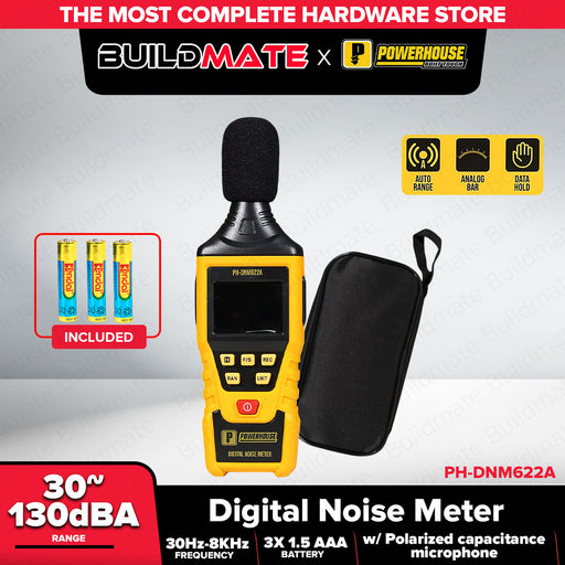Buildmate Online DepotNo reviewsPowerHouse Digital Noise Meter w/ Polarized Capacitance Microphone 30-130DBA PH-DNM622A PHHT SPECIFICATIONS:► Model: DNM622A► Display: LCD Display►...
