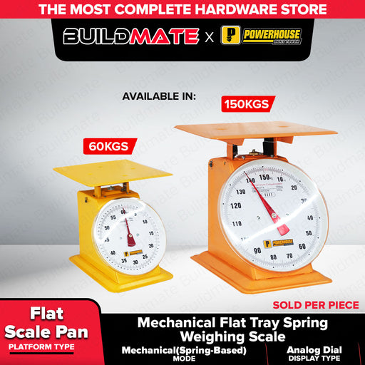 Buildmate Online DepotNo reviewsPowerHouse 60kgs | 150kgs Mechanical Flat Tray Spring Weighing Scale PH-MFSWS-60KG | PH-MFSWS-150KG PHHT SPECIFICATION:- Model: PH-MFSWS-60KG- Max....