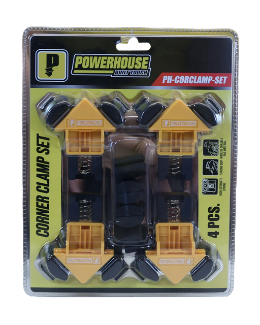 Buildmate Online DepotNo reviewsPowerHouse Corner Clamp Set 90 degree 4pcs Corner Clamp Set PH-CORCLAMP-SET PHHT SPECIFICATIONS:Model: PH-CORCLAMP-SETAngle: Fixed at 90 degrees fo...