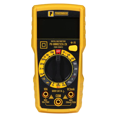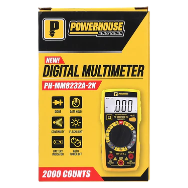 PowerHouse Digital Multimeter 2,000 Counts CAT III 600V AC/DC Voltage AC Current Auto Ranging Handheld Electric Meter for Continuity, Battery, and Diode Check PH-MM8232A-2K PHHT