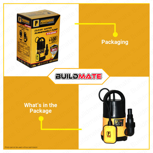 BUILDMATE Powerhouse Clear Water Submersible Pump 400W Copper Wire Clean Water Transfer Pump Portable Utility Pump for Swimming Pool Garden Pond Water Pump PH-CO-SUB400W • PHMB
