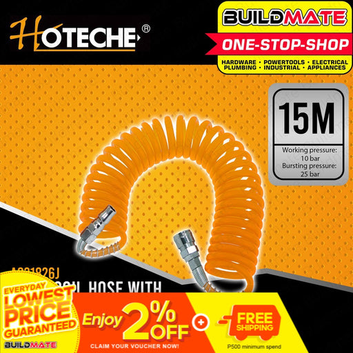 HOTECHE Air Recoil Hose with Japan Style Quick Coupler 15m HTC-A831826J •BUILDMATE•
