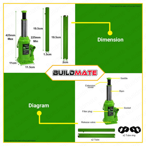 Buildmate Online DepotHOYOMA JAPAN Hydraulic Bottle Jack 15 Tons HT-HBJ15 100% ORIGINAL / AUTHENTIC •BUILDMATE• HHT SPECIFICATIONS: ►Model: HBJ15 ►15 Tons ►Min.: 225mm ...