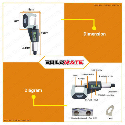 Buildmate Online DepotHoteche Digital Outside Micrometer HTC-284405 •BUILDMATE• SPECIFICATIONS: ►Model: 284405 ►Satin finish scale ►Packing: plastic box & color sti...