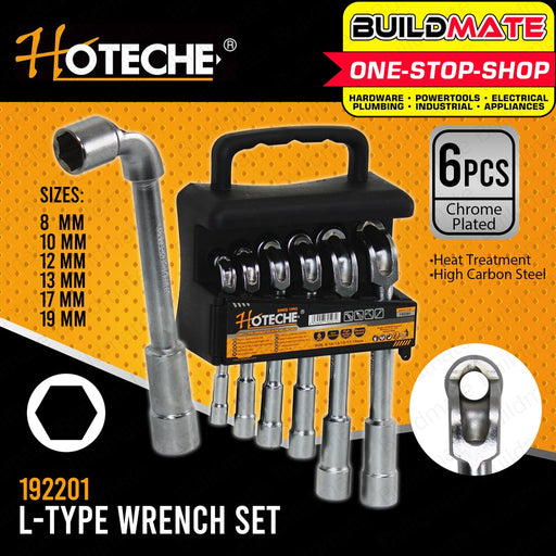 Buildmate Online DepotHoteche L-type Wrench Wrenches Set 6P HTC-192201 •BUILDMATE• SPECIFICATIONS: ►6 PCS L-TYPE WRENCH SET ►8-10-12-13-17-19mm ►Powder coated ►Cross des...