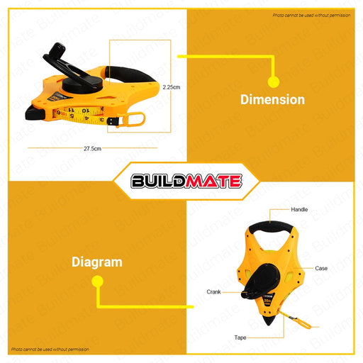 Buildmate Online DepotHoteche Fiberglass Measuring Tape Measure 30m HTC-281302 •BUILDMATE• SPECIFICATIONS: ►Model: 281120 ►Material: ABS+TPR shell ►30M 100ft ►Metri...