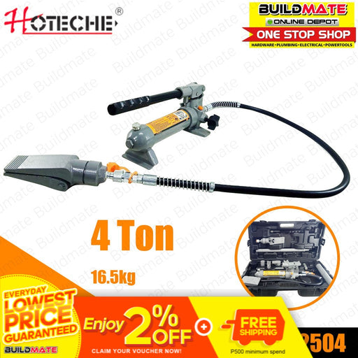 Buildmate Online DepotHOTECHE 4 TONS Hydraulic Portable Body Repair Kits 652504 •BUILDMATE• SPECIFICATIONS: ►Capacity :4 TONS ►Min.Ram Hight:330mm ►Ram Lifting Hight:12...