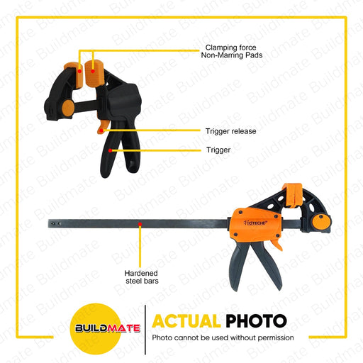 Buildmate Online DepotHOTECHE Quick Ratchet Bar Clamp 6 x 63mm •BUILDMATE• AVAILABLE IN: ►4 x 34mm ►6 x 63mm ►12 x 63mm ►18 x 63mm ►24 x 63mm ►30 x 63mm SPECIFICATIONS:...