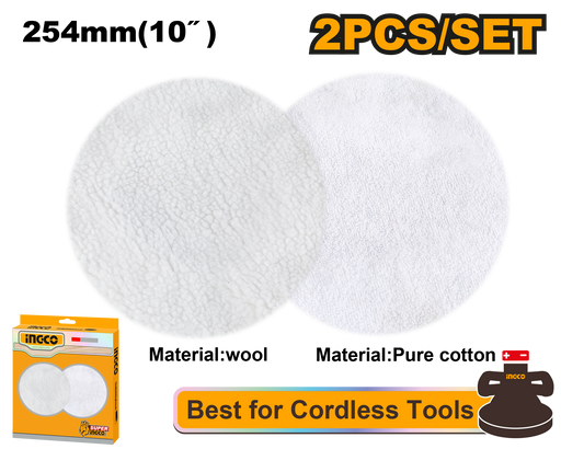 Buildmate Online DepotNo reviewsBUILDMATE Ingco 2pcs Polishing and Cleaning Set 254mm(10") APP25402- IHT SPECIFICATION:Model: APP25402Material: pure wool and pure cottonDiameter:2...