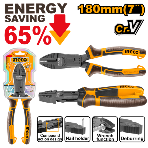 BUILDMATE Ingco 7" Inch Compound Action Combination Pliers (180mm) HCCP58180 - IHT