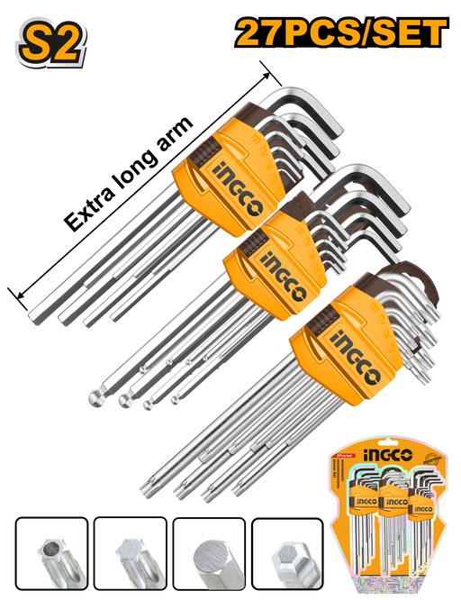 BUILDMATE Ingco 27pcs Hex Key and Torx Key Set HHKSET0271 - IHT