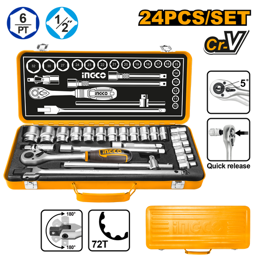 BUILDMATE Ingco 24pcs 1/2" Socket Set HKTS12242 - IHT