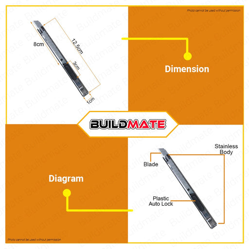 Buildmate Online DepotBUILDMATE Mars Tools Cutter Knife 12.5CM Handy Utility Knife Cutter Stainless Snap-off Blade Knife Wide Blade Cutter SPECIFICATIONS:►Model: GENERI...