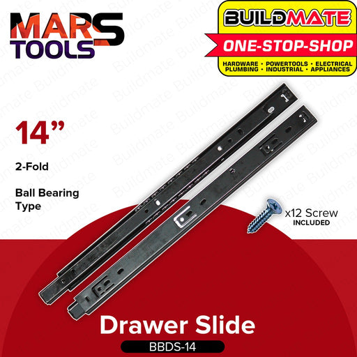Buildmate Online DepotMARS TOOLS Ball Bearing Drawer Slide 2-FOLD 12" | 14" | 16" SOLD PER PAIRS •BUILDMATE• AVAILABLE IN: ►12" ►14" ►16" SPECIFICATIONS: ►2-FOLD ►12pcs...
