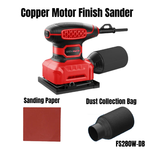 BUILDMATE 280W Copper Motor Finish Sander 110x100mm w/ Dust Collection Bag FS280W-DB