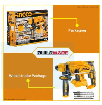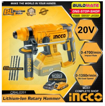 [BUNDLE] INGCO Cordless Rotary Hammer Chipping Gun Drill 20V CRHLI2201 + FCLI2001 Fast Charger+ FBLI2001 2A Battery POWERSHARE | 100% ORIGINAL / AUTHENTIC •BUILDMATE• ICPT