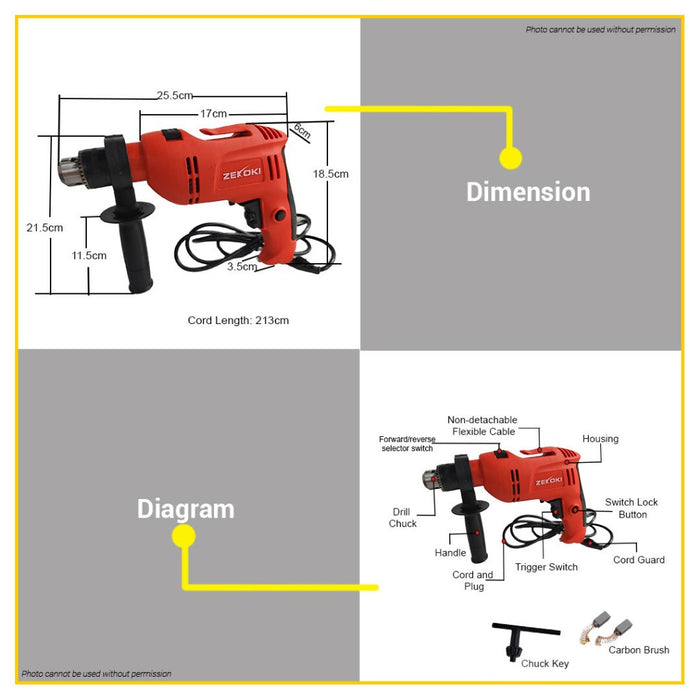 BUILDMATE Zekoki 550W 13MM Electric Impact Hammer Drill for Wood Drilling Cement Metal ZKK-1500HD