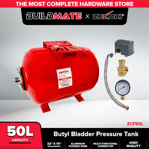 Buildmate Online DepotBUILDMATE Zekoki Butyl Bladder Pressure Tank 50L Steel Flange with 5-Way Connector Expansion Horizontal Tank for Water System ZCF50L SPECIFICATION:...