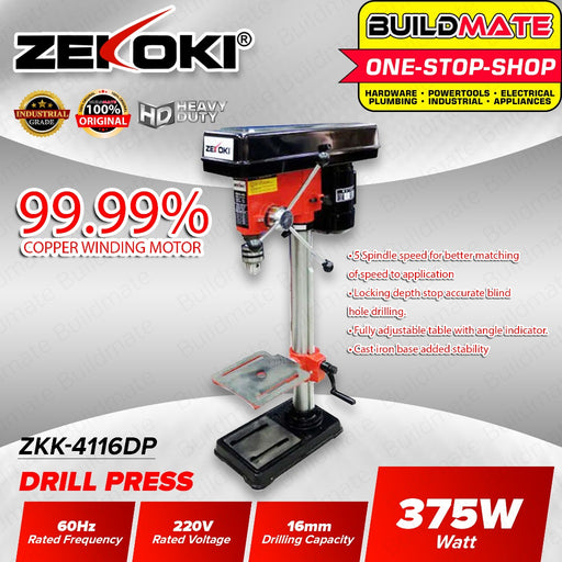 Buildmate Online DepotBUILDMATE Zekoki 1/2HP 375W 5-Speed Benchtop Drill Press Stand Table Drilling Machine Cast Iron Base ZKK-4116DPSPECIFICATIONS:►Model: ZKK-4116DP►Ra...