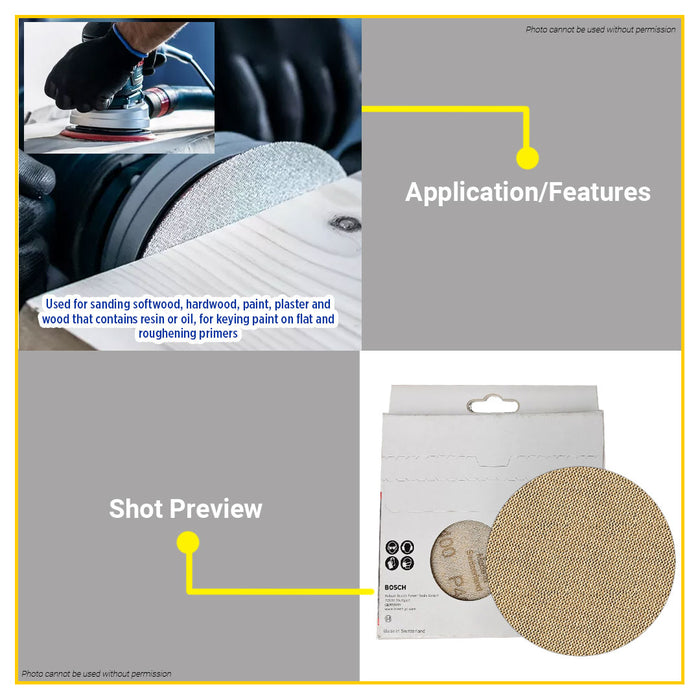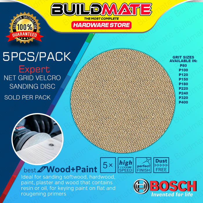 BUILDMATE Bosch 5PCS/SET 125MM M480 Net Grit for Wood and Paint Sanding Discs 80 - 400 Grit - BAX