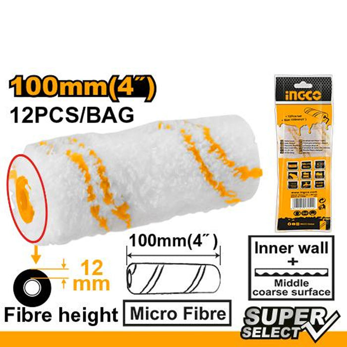 BUILDMATE Ingco 12PCS/SET Roller Cover Inner Wall 4" Inch Cylinder Brush Painting Tool HRC560412 - IHT