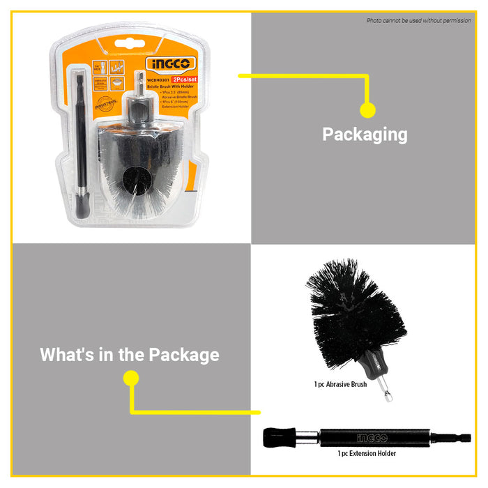 BUILDMATE Ingco Abrasive Bristle Brush with Extension 3.5" Inch Nylon Cleaning Brushes Kit WCBH0301 - IHT