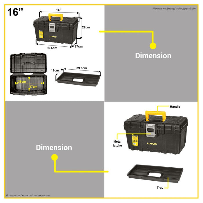 BUILDMATE Lotus Tool Box Organizer Storage Tools 16" 40CM / 24" Inch 61CM Metal Latch Lock - LHT