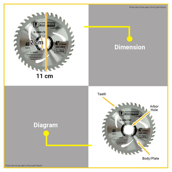 BUILDMATE Powerhouse 4" Circular Saw Blade CARBIDE Tip For WOOD 4" 40T PH-CSWOOD4X40T - PTAA