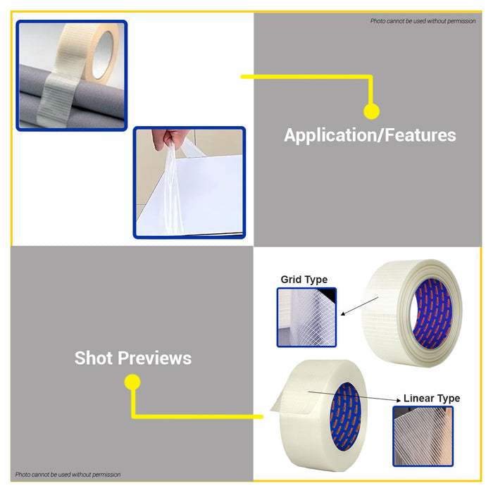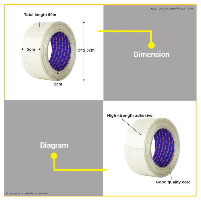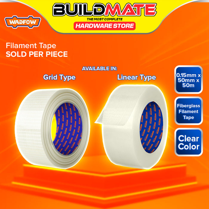 BUILDMATE Wadfow Filament Tape 0.15mmx50mmx50m Linear / Grid Type Fiberglass Clear Reinforced Bundle Strapping Packaging Sealing Tape SOLD PER PIECE - WHT