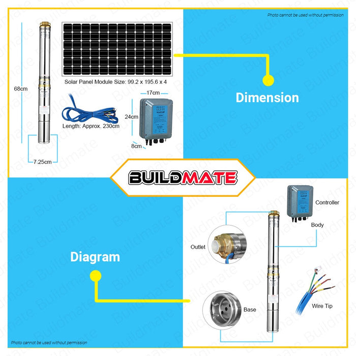 DAYUAN SOLAR SET Deep Well Pump Solar 3TWJ1-30/8-300W/30V with 1 Pc 36V Solar Panel Module •BUILDMATE• DBS