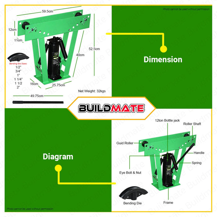 HOYOMA JAPAN Hydraulic Pipe Bender 12 TONS HHW-12Q High Quality •BUILDMATE•