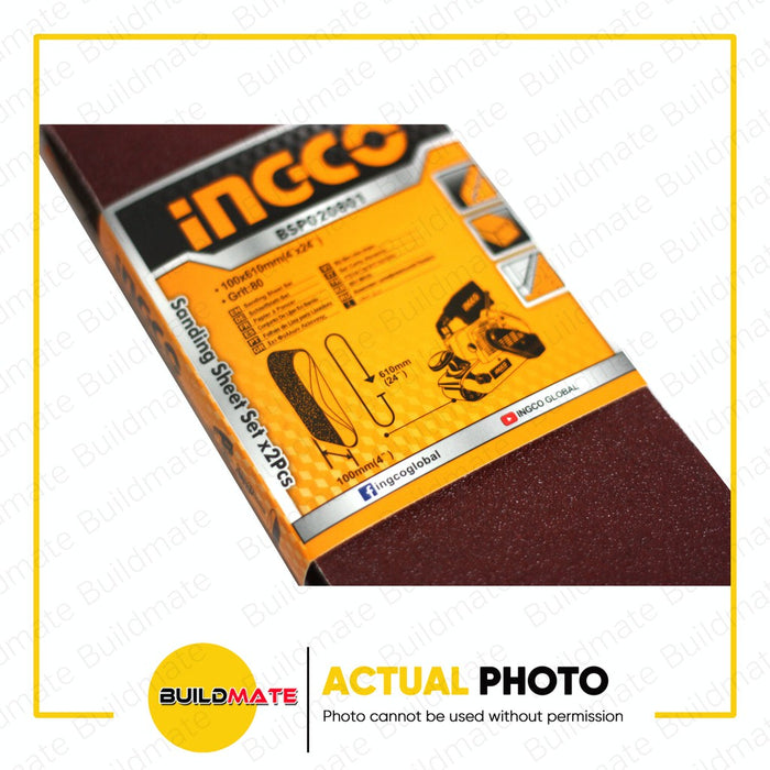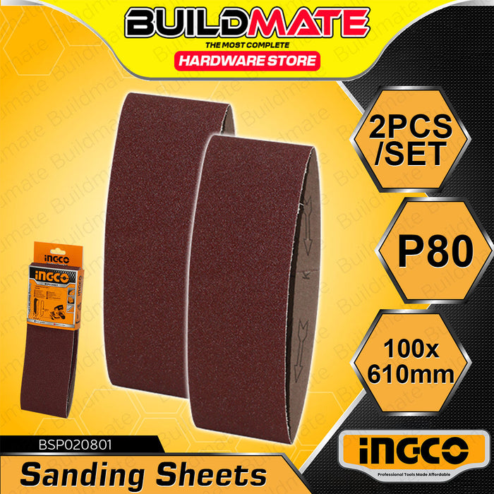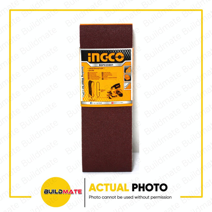 BUILDMATE Ingco 2PCS/SET Sanding Sheet 100x610mm Grit P80 Belt Sander Sheets Sandpaper For Polishing Wood BSP020801 - WHT