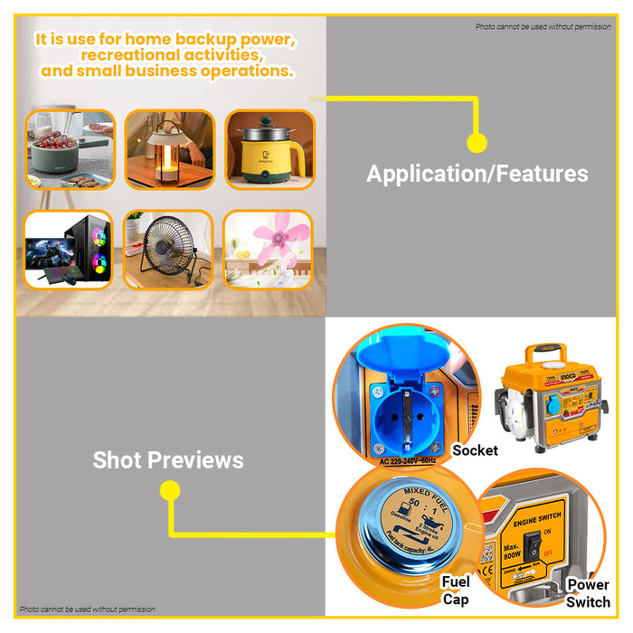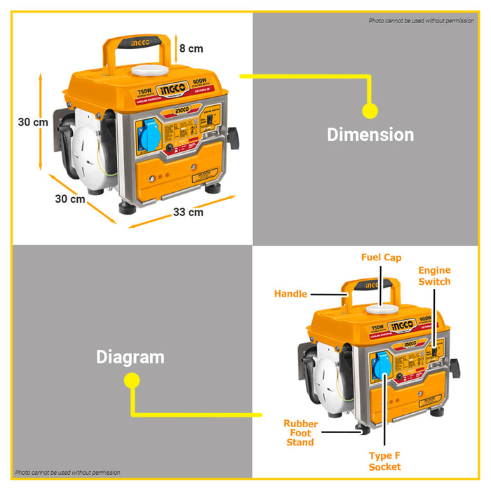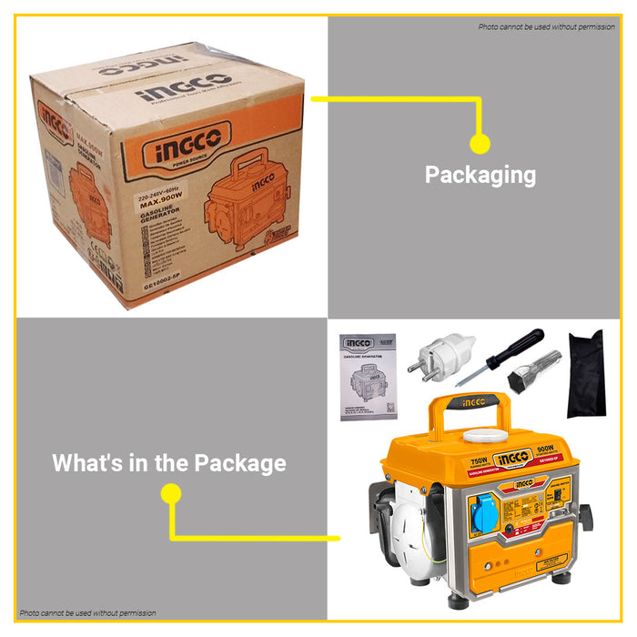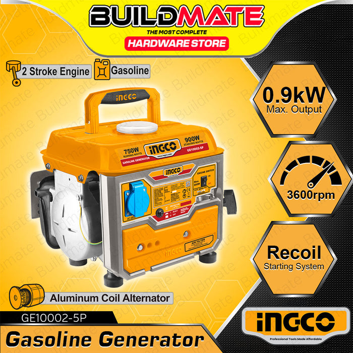 BUILDMATE Ingco Gasoline Generator 0.9kW 2-Stroke Portable Gas Powered Recoil Start Generator Backup Power GE10002-5P - IIT