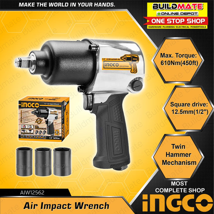 INGCO Air Impact Wrench 1/2" Inch 610N.M Twin Hammer For Tire & Lug Nuts AIW12562 100% ORIGINAL / AUTHENTIC •BUILDMATE• IPT