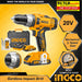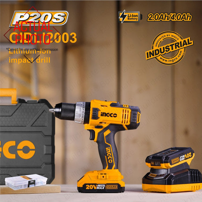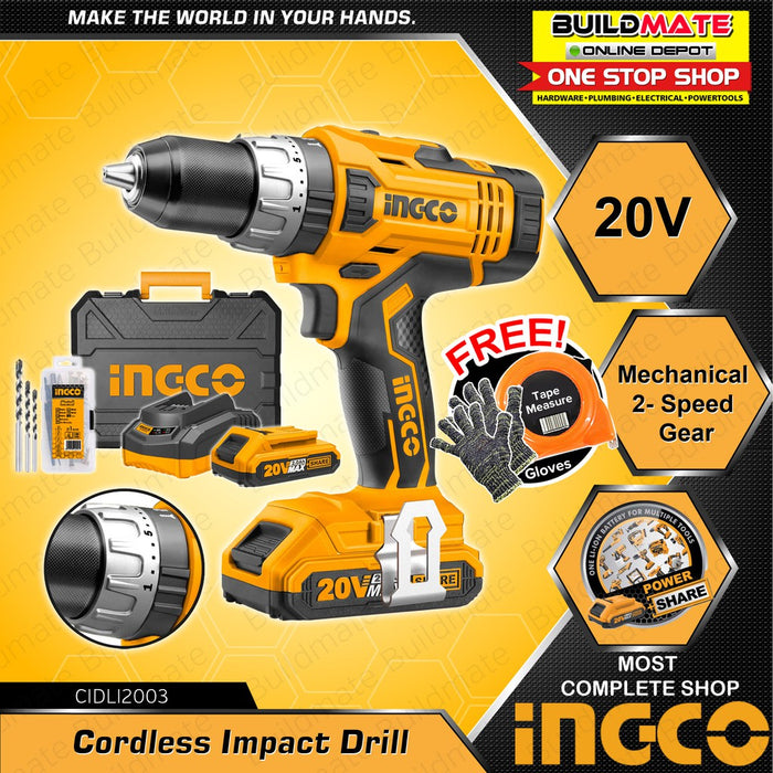 INGCO Cordless Impact Drill Lithium-Ion 20V CIDLI2003 POWERSHARE +FREE TAPEMEASURE & GLOVES IPT