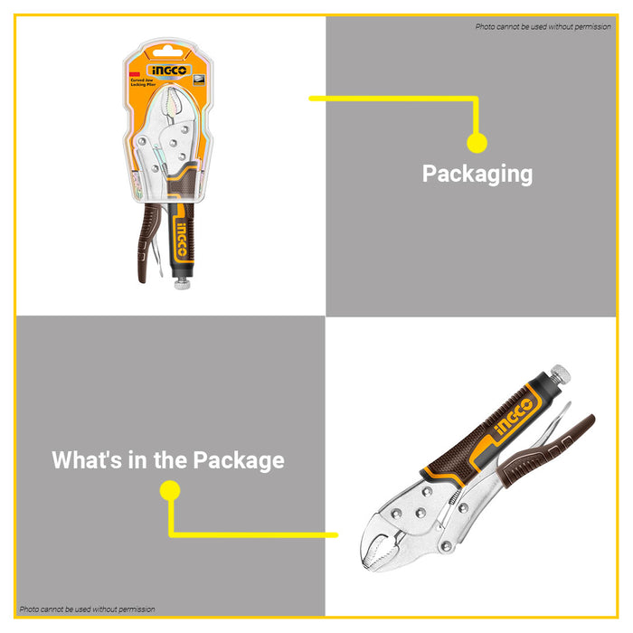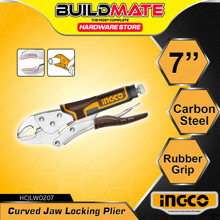 BUILDMATE Ingco Curved Jaw Locking Plier 7" Inch Grade Steel Vise Grip Nickel Plated With Wire Cutter Locking Adjustable Pliers Adjustable Wrench, Locking Wrench, Locking Hand Tools HCJLW0207 • IHT